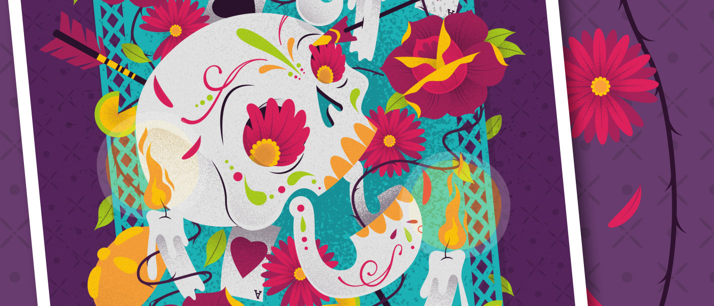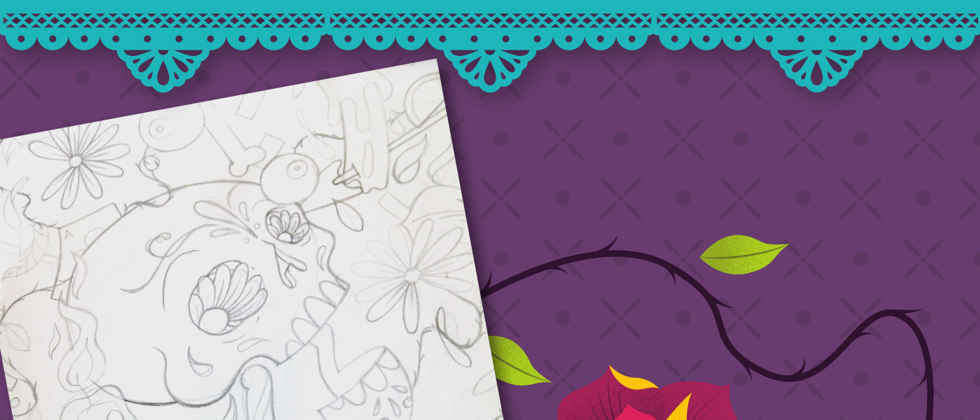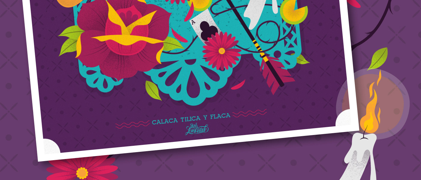 Ilustración para la expo "Calaca Tilica y Flaca" que organizan Rojo Bermelo y Mr. Kone en la CDMX con motivo del tradicional día de muertos.